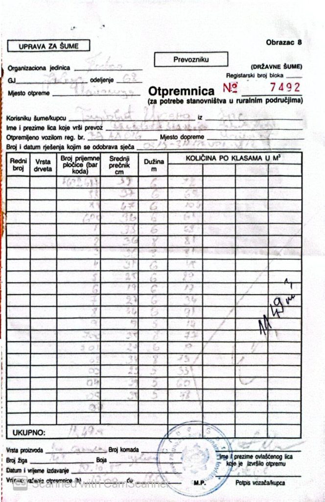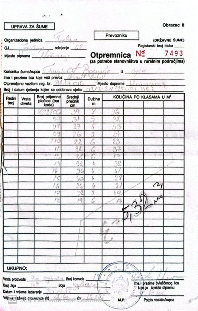 Tokom tih kontrola pronađene su i pomenute otpremnice, koje su, prema saznanjima Standarda, poslužile kao jedan od dokaza nezakonite sječe šume i nezakonitog prometa drveta.
