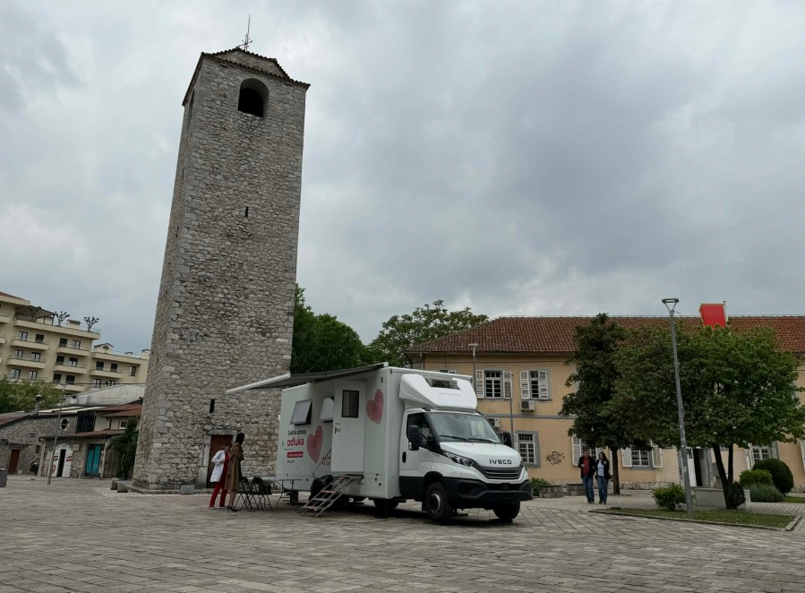 Zavod za transfuziju krvi Crne Gore obavještava javnost da će transfuziomobil u periodu od 20. do 24. aprila biti postavljen na Trgu Bećir-bega Osmanagića, kod Sat kule.